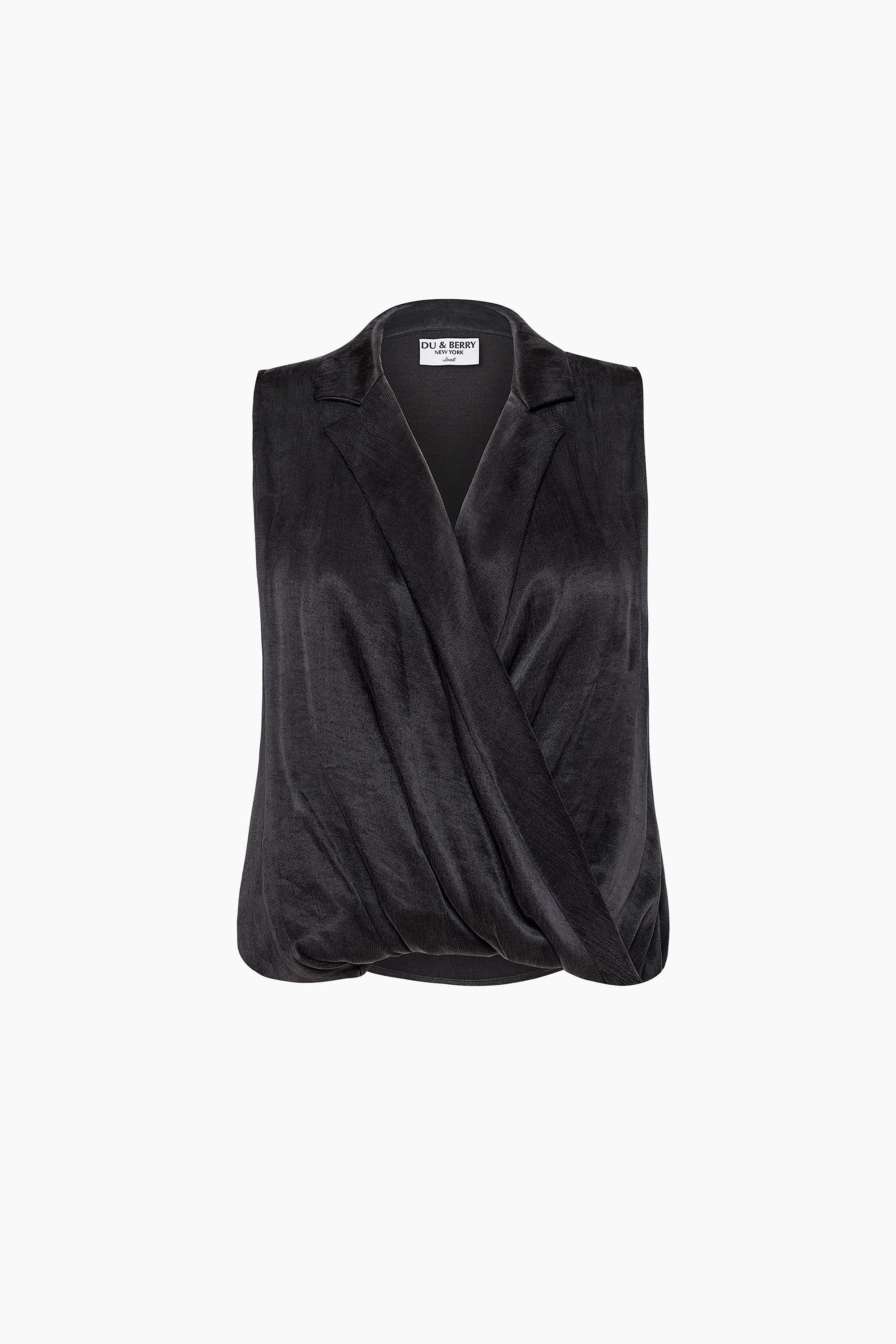 • Du & Berry Twist Collared Top in Black sleeveless wrap front blouse with collar