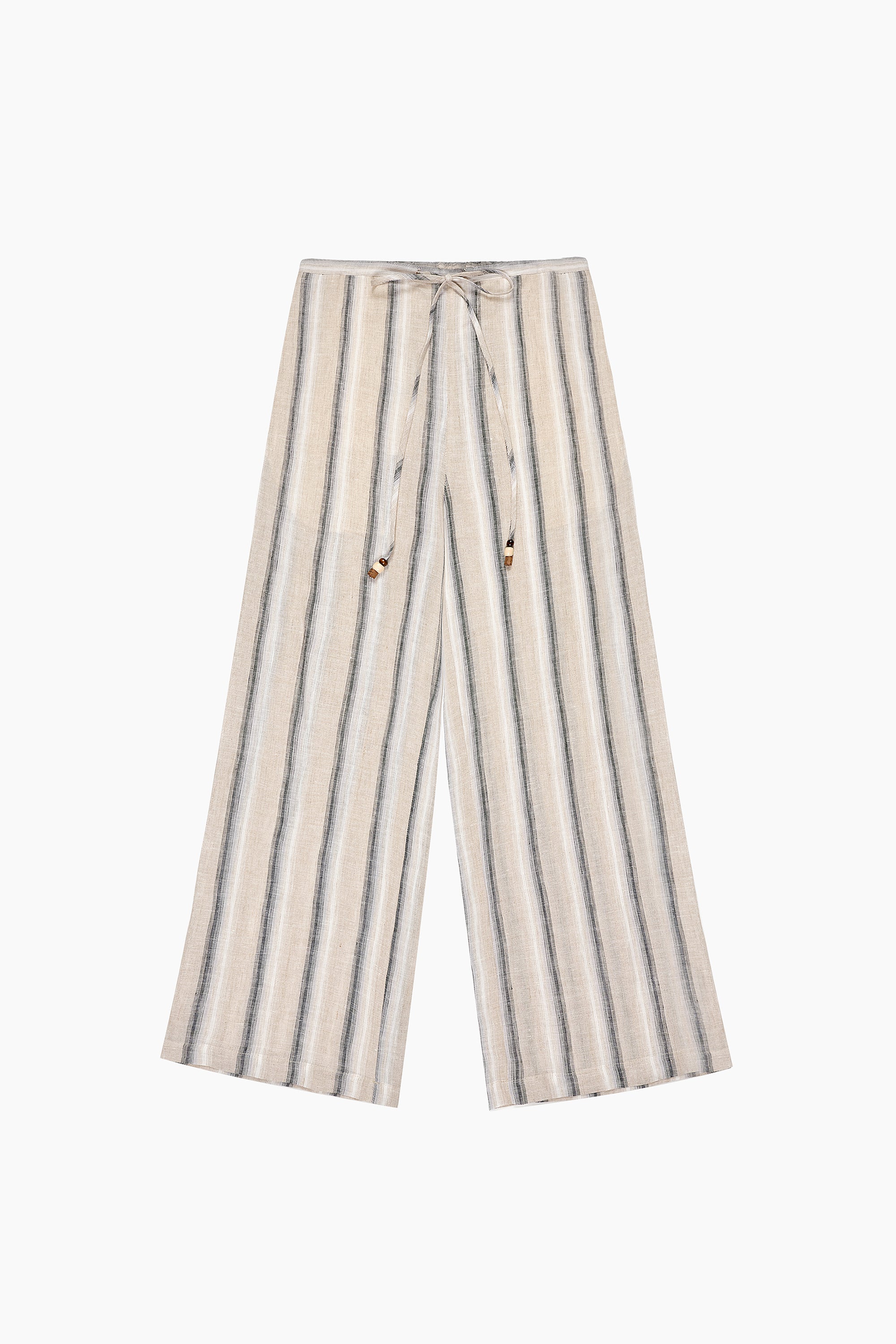 • Erin Linen Wide Leg Stripe Pants in Beige - Du & Berry